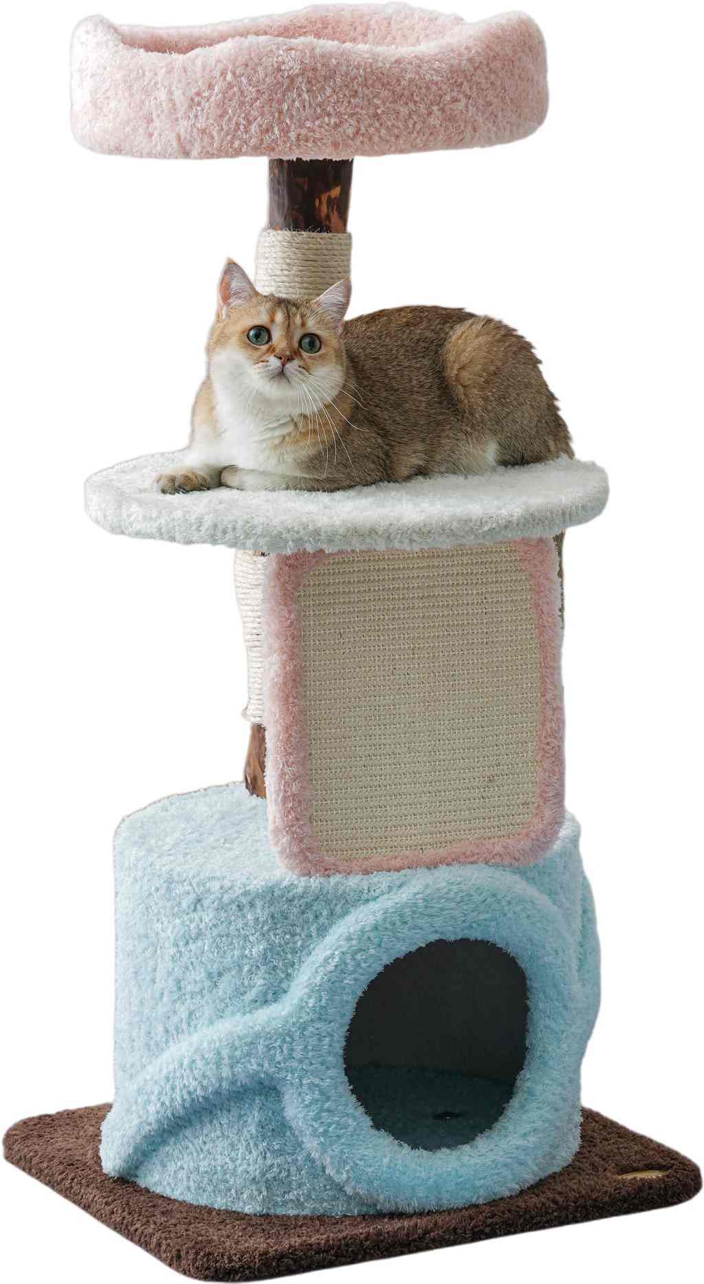 絨毛布材質,柔軟舒適,保護貓咪玩樂不受傷。