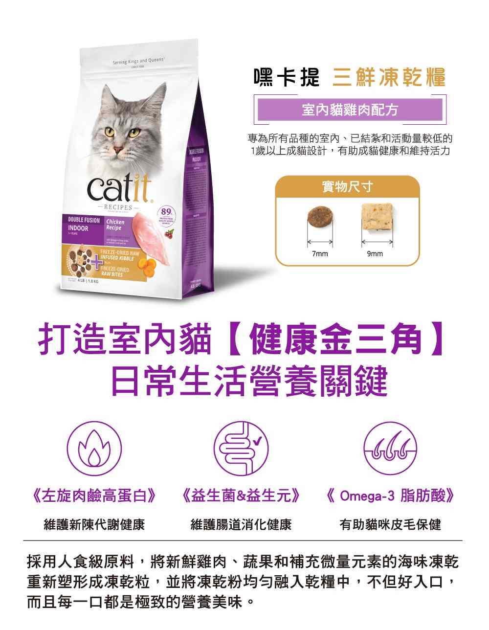 「Catit嘿卡堤」三鮮貓凍乾糧50g|室內貓雞肉配方