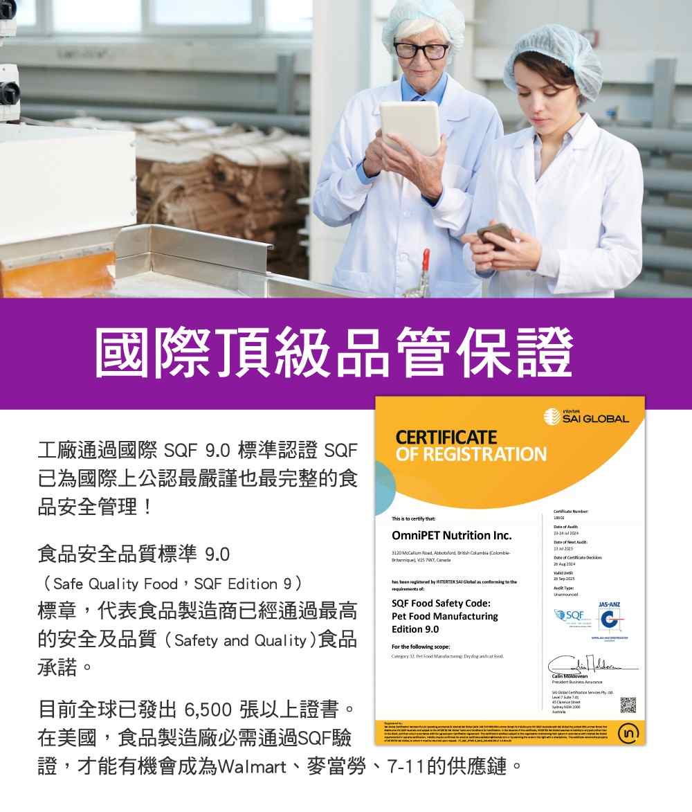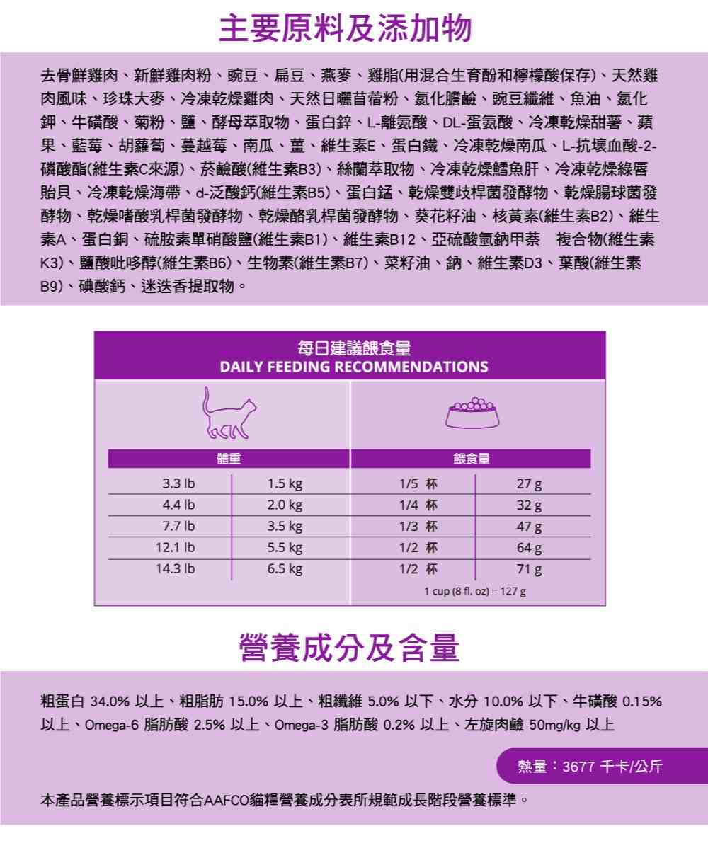 優質成分:不添加玉米、小麥、大豆、麩質、動物副產品、人造色素或香料。