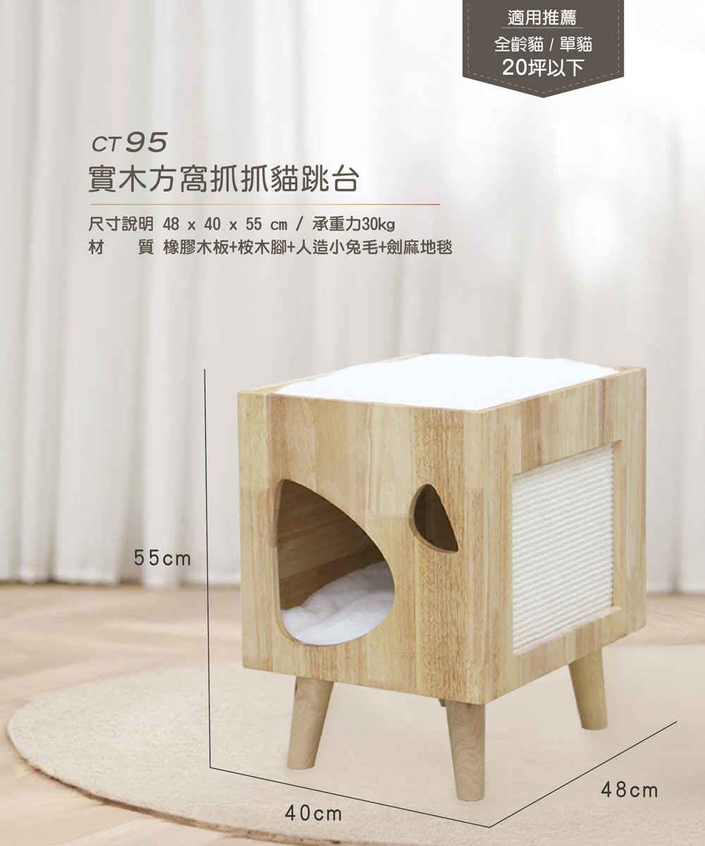 「doter寵愛物語」CT95實木方窩抓抓貓跳台