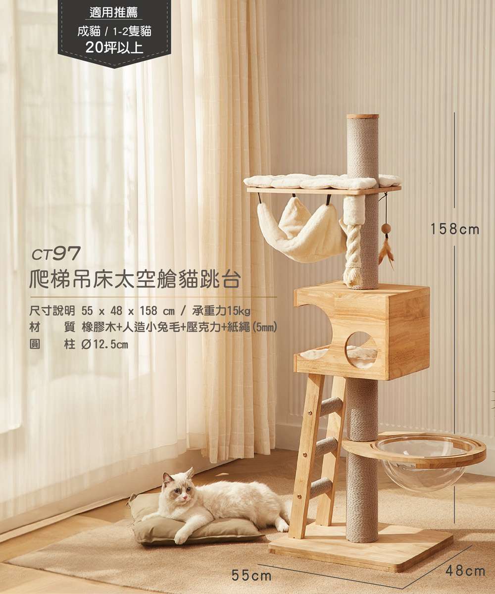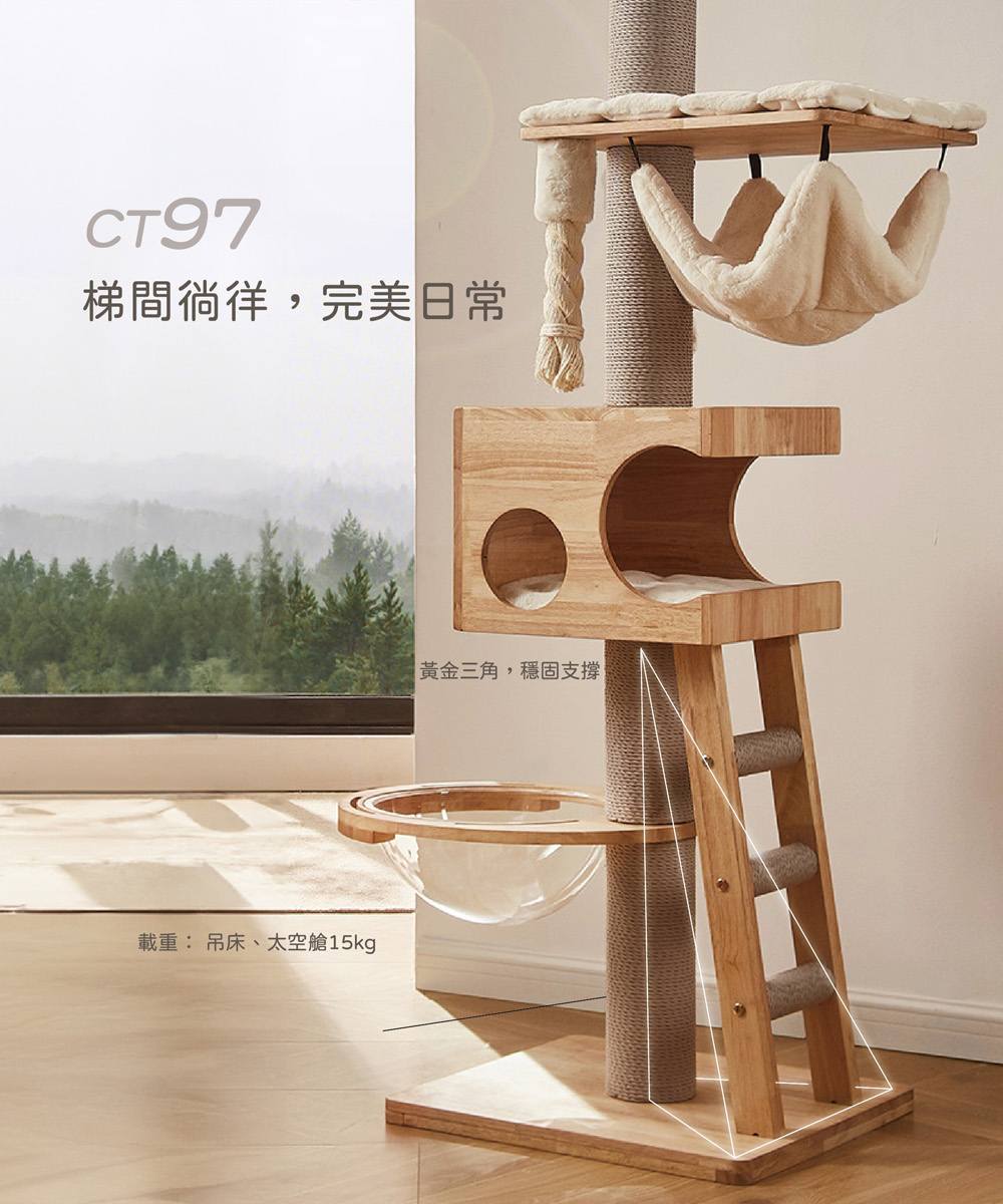 「doter寵愛物語」貓跳台CT97爬梯吊床太空艙+橡膠木