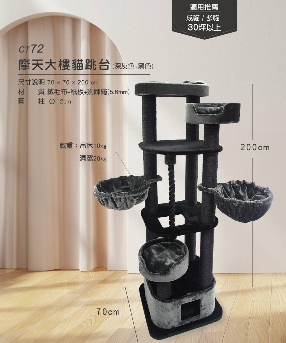 「doter寵愛物語」貓跳台CT72摩天大樓(深灰色+黑色)