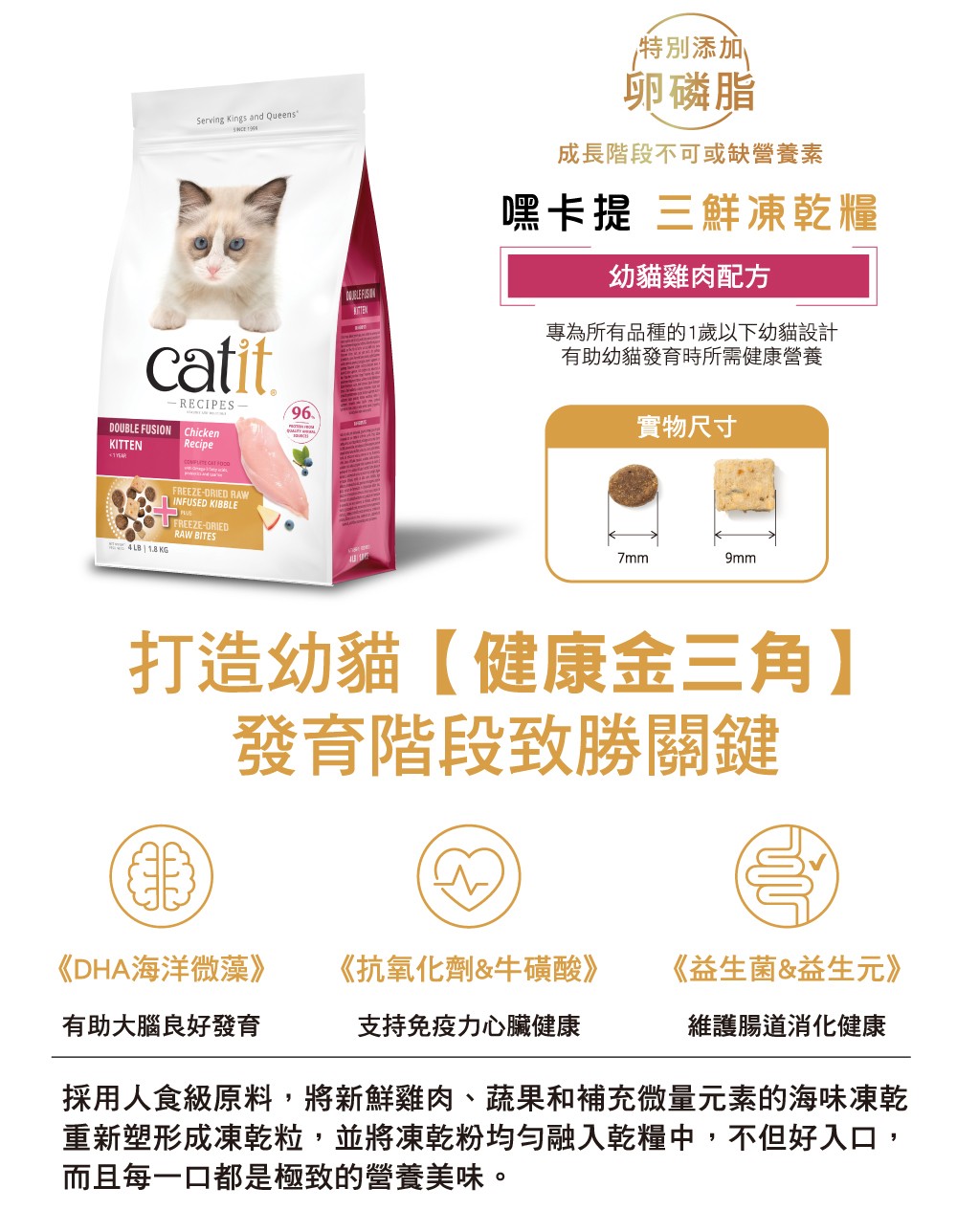 「Catit嘿卡堤」三鮮貓凍乾糧1.8kg|幼貓雞肉配方