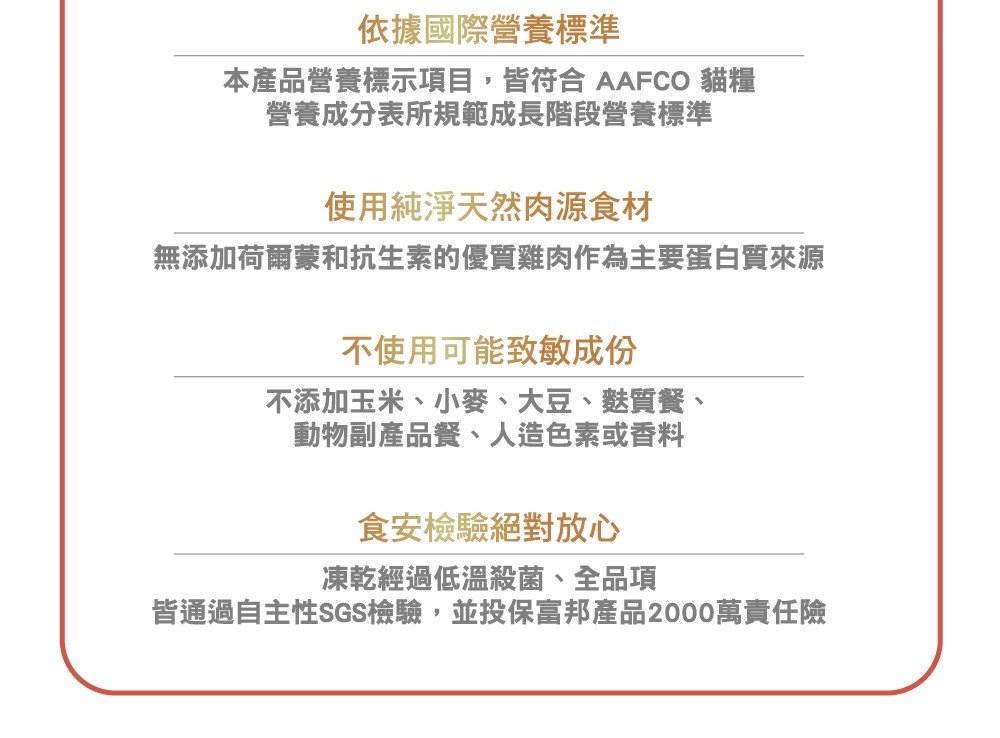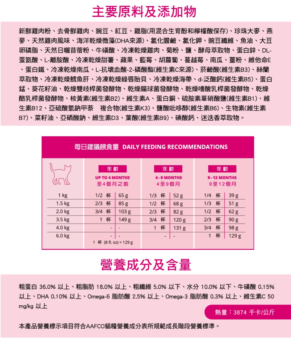 營養標示項目符合AAFCO貓糧營養成分表規範成長階段營養標準