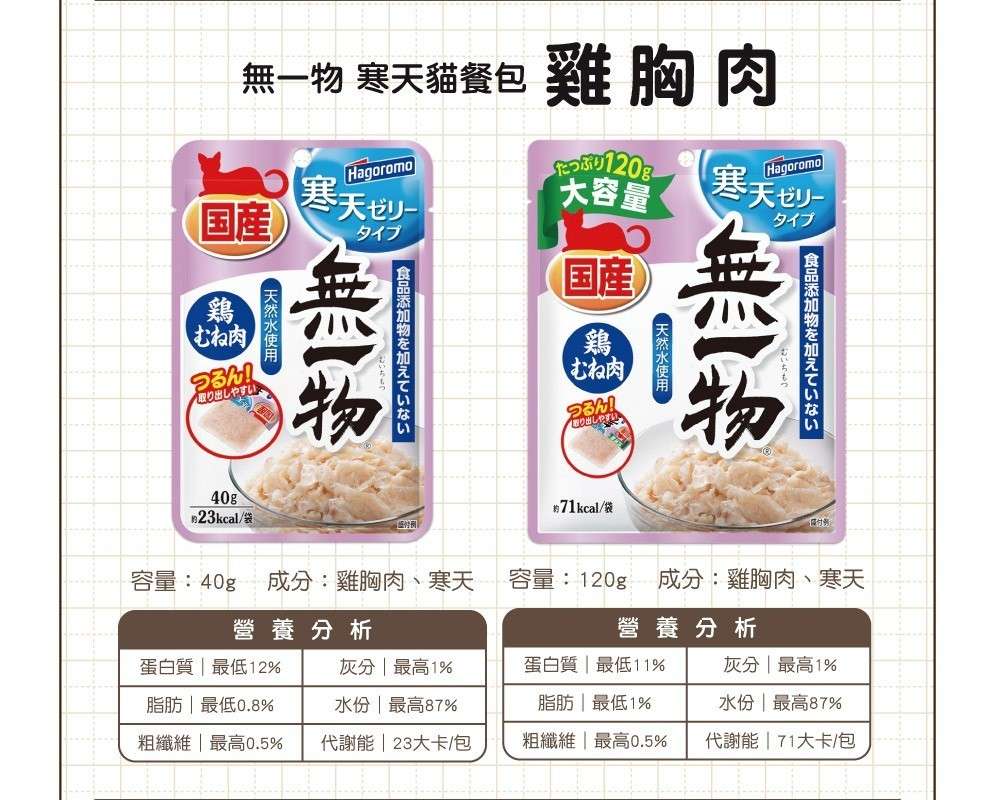 口味:雞胸肉40g、鮪魚40g、鰹魚40g